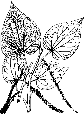 水青树tetracentronTetracentron sinense Oliv.,水青树科,水青树属。落叶乔木,高达40 m,胸径1.5 m。树皮灰褐色,老时片状剥落。具长短枝,长枝细长,下垂,短枝密生叶痕和芽鳞痕。叶纸质,互生,宽卵形,长7~10 cm,先端渐尖,基部心形,密生腺锯齿,下面被白粉,掌状5~7脉;柄长2~3 cm。花小,两性,穗状花序,下垂。蒴果4深裂,宿存花柱位于果基部,长3~5 mm,棕色。种子4~6,条状长圆形,长2~3 mm,有棱脊。分布于甘肃、陕西、湖北、湖南、四川、贵州、云南等省区。生于海拔1 400~3 000 m林地的林缘或林中。喜光,喜生于气候凉润,酸性土山地。中国特产稀有树种,系孑遗的被子植物,注意保护母树,扩大造林。树姿优美,可供观赏。