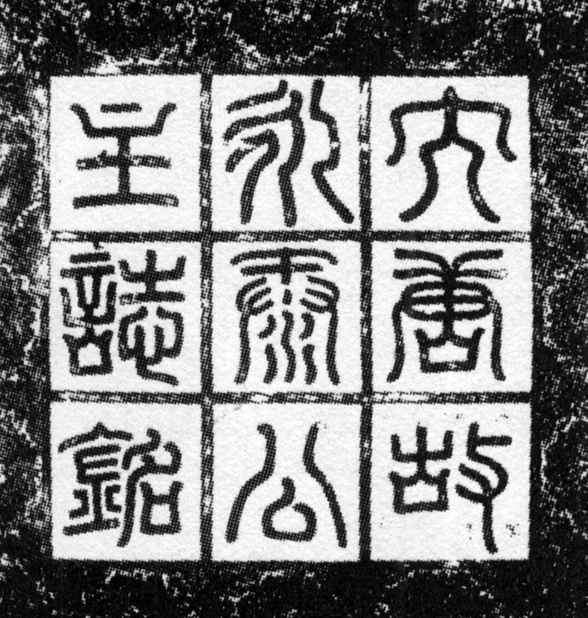 永泰公主墓志·蓋 唐·神龍二年(706)刻。正書三十一行,行三十一字蓋篆書題“大唐故永泰公主志銘”九字。徐彦伯撰,書者不詳。書風緊嚴遒麗,呈盛唐藝術格韵。惟字體大小不甚一致,且有錯字。志文凡涉及皇帝,皆提行或空三格或空二格,亦不統一。永泰公主係高宗(李治)舆則天武后之孫女,嫁武后侄孫武延基,坐罪死。中宗 (李顯)復位,大造墳墓以改葬。墓志與蓋均精刻豪華,格調高雅。墳墓入口至後室長八十七米,墓底深十六米,規模宏偉,為唐朝皇權、經濟、藝術之集中體現。一九六○年九月發掘墳墓時,出土於唐乾陵東南約三華里之陪葬墓中。今存乾陵博物館。 |