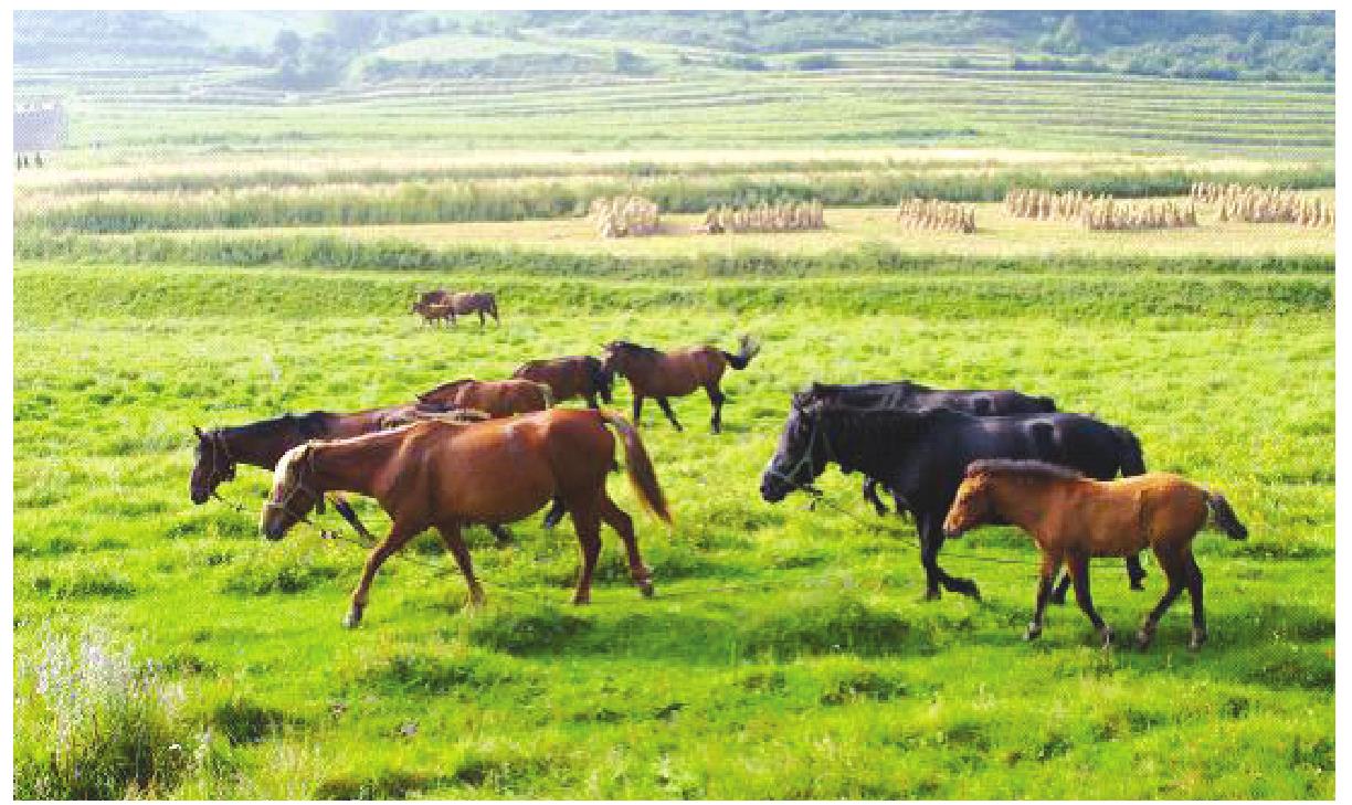 | 释义 | 河曲马又称唐克马、乔科马。中国古老马的地方品种。属挽乘兼用型。中国产于甘肃、青海、四川三省交界地区。马体粗糙结实,整个体形显得粗长宽厚。头稍重,颈中等长,且厚,鬐甲较低,背腰平直而稍长,尻稍显短斜较宽,胸深宽,腹不过大,四肢干燥,关节明显,距毛不多。蹄质欠坚实,偶有裂蹄。平均体高,公马约141.5 cm,母马约139.7 cm。毛色以黑、青、骝、栗为主,约有30%的马有白章。河曲马耐劳、耐粗饲,抗病力强,性温顺,易调教,挽用能力较强,尤以善走水草滩和适应于海拔4 000m的高原环境而著称。 河曲马分布于甘肃、青海和四川3省的接壤处,中心产区在甘肃的玛曲、四川的若尔盖和青海的河南蒙古族自治县,此三地区均位于黄河上游第1弯曲处,故得此名。母马平均体高132.5cm,体长139.6cm;胸围164.7cm。偏挽型的最大挽力为370kg,功率为0.88马力。偏乘型的骑乘速度1600m为2min0.2s;长途骑乘携带25kg重量,可日行40~50km。 河曲马 河曲马河曲马又称乔科马,是中国著名的地方优良马种。以玛曲县曼日玛、采尔玛、欧拉、阿万仓及河曲马场等地所产的最为有名。河曲马体形匀称,耳长敏捷,胸深广,背长腰短平直,四肢关节筋腱发育壮实。毛色以黑、青为主,也有骝、栗等色。河曲马繁殖性能好、遗传性稳定、性情温顺、气质稳静,对高寒多变的气候有极强的适应能力,在海拔4000米以上的高山骑乘,行走自如,特别以善走沼泽草地而著称。因其适应性强,具有挽乘驮载兼用的体形,役用性能颇佳而享誉骑兵与各地农牧民。欧拉羊 ☚ 沙棘 黑紫羔羊 ☛ 河曲马 河曲马挽乘兼用型马品种。原产甘南藏族自治州,因主产于黄河第一弯广阔草原而得名。1970年天 水市 引 进487匹 ,2006年 饲 养 数 量11549匹,主要分布在秦州、甘谷、武山和张家川;河曲马属挽乘兼用型,略偏挽,适应力、抗病力强。体型比较一致,公马平均体高137.21厘米,母马132.47厘米。公马平均体重346.27公斤,母马330.95公斤。毛色以黑毛和青毛为主,骝毛、栗毛次之。马群受胎率,两年一胎或三年两胎,胚胎期生长发育率快。挽力强,最大挽力370公斤。驮载100~125公斤,日行50公里。饲养数量11549匹。