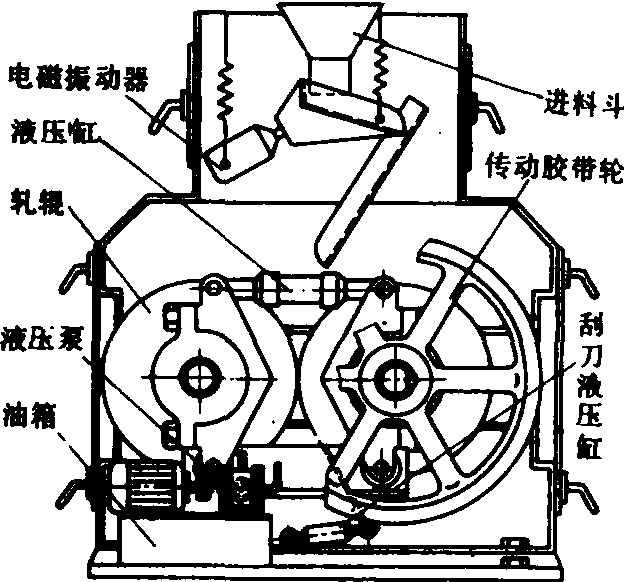对辊轧坯机 立式直列轧坯机 由多个轧辊上下排列的轧坯机。轧辊可依靠本身的重量相互压紧,但在油料通过轧辊间隙时会产生向上跳动的现象。采用弹簧调节装置可控制跳动的幅度和坯片的厚度。常见的有三辊轧坯机和五辊轧坯机。轧辊表面结构有两种形式,一种为上面第一辊表面有槽纹,其余为光面辊;另一种为第一、二辊为槽纹辊,其余为光面辊。一般来说,三辊轧坯机的第一、三辊在一条中心线上,第二辊(中间辊)则在另一条中心线上;五辊轧坯机的第一、三、五辊在一条中心线上,第二、四辊则在另一条中心线上。轧辊的这种交错排列是为了便于喂料。 三辊轧坯机是中国的定型产品,轧辊直径400毫米,长400和600毫米。轧辊转速为200~220转/分,配备动力7.5和14千瓦。其处理能力分别为16吨/日和24吨/日。 五辊轧坯机采用不同的轧辊直径,更方便喂料。一般是第一、三、五辊的直径较大(450毫米),第二、四辊的直径较小(400毫米)。也有第一至第四辊的直径相同,第五辊的直径较大。轧辊长1 066~1 524毫米。主动辊转速通常为180转/分,线速度约190米/分。配用动力18~30千瓦。五辊轧坯机处理不同油料的能力分别为:棉籽100~120吨/日,葵花籽40~50吨/日,亚麻籽12~15吨/日。 油料轧坯机oil semifinished product machine将破碎软化后的油料籽实进行碾轧使之成为坯片的机械。油料轧坯的目的在于初步破坏细胞结构、增大其表面积,有利于蒸炒。常用的轧坯机为轧辊式,利用两个等径等速相对回转的轧辊,将通过轧辊之间的油料籽实碾轧成一定厚度的坯片。轧辊有光面辊和槽面辊之分,有单对辊、双对辊、三辊和五辊等机型,其辊径、辊长有多种规格,可供选用。 |