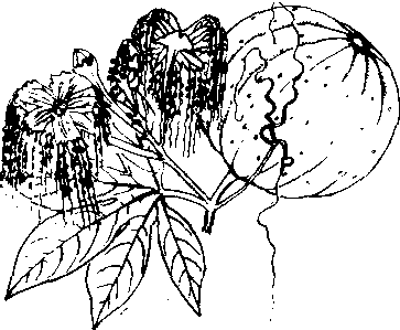 | 释义 | 油渣果largefruit hodgsoniaHodgsonia macrocarpa (Bl.)Cogn.,又称油瓜、猪油果。葫芦科,油渣果属。大型木质藤本。常生于海拔300~1 500 m的灌丛及路旁。分布于云南、西藏和广西,也见于印度、马来西亚、缅甸和孟加拉等国。茎粗壮。单叶互生,常绿、革质,两面无毛;叶柄粗壮,具纵条纹。叶柄对侧有卷须,2~5歧。花单性,雌雄异株;雄花排成总状,雌花单生于叶腋;花冠钟形,外面黄色,里面白色,先端流苏状。果实大,扁球形,内有6~8枚大型长圆形种子。花果期6~10月。种子富含油脂,加工后可供食用。可用种子或压条和插枝繁殖。