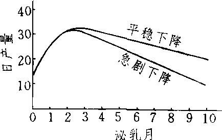 泌乳曲线 泌乳曲线以各泌乳月为横座标,各泌乳月产量为纵座标而绘制成的曲线图。反映奶畜泌乳产量升降情况的一种统计图形,用以评定奶畜泌乳期产乳的平稳程度和为科学饲养提供根据。 |