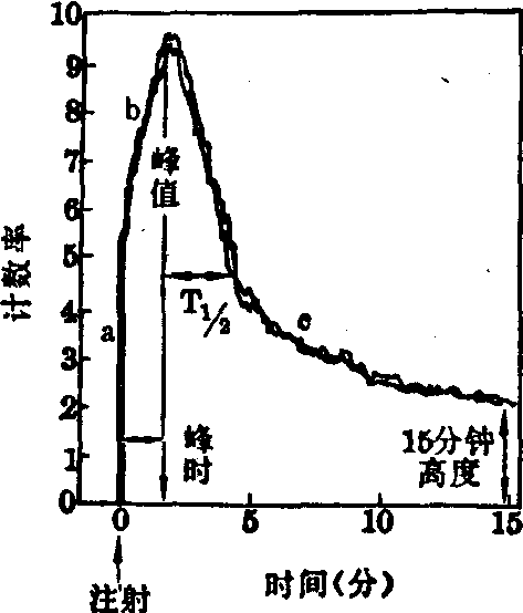 式中C为清除率,Q为示踪物注入量,Ka和Kb为由心前区放射性下降曲线分解所得两条指数曲线的下降斜率,A和B为两条指数曲线的零时计数率(图4)(参见“示踪动力学”条)。 有人提出了更为简单的方法,只求出放射性下降曲线某一段的下降斜率K和相