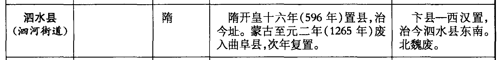 泗水县(泗河街道)隋隋开皇十六年(596年)置县,治今址。蒙古至元二年(1265年)废入曲阜县,次年复置。卞县—西汉置,治今泗水县东南。北魏废。