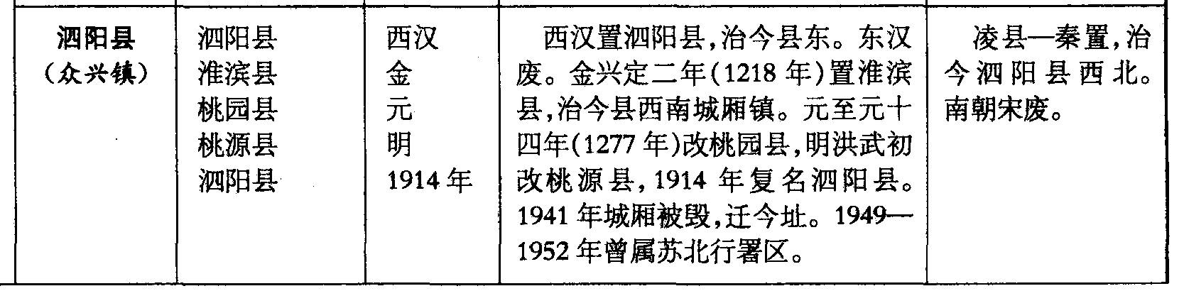 泗阳县(众兴镇)泗阳县淮滨县桃园县桃源县泗阳县西汉金元明1914年西汉置泗阳县,治今县东。东汉废。金兴定二年(1218年)置淮滨县,治今县西南城厢镇。元至元十四年(1277年)改桃园县,明洪武初改桃源县,1914年复名泗阳县。1941年城厢被毁,迁今址。1949—1952年曾属苏北行署区。凌县—秦置,治今泗阳县西北。南朝宋废。