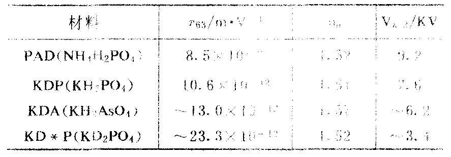 早期用磷酸二氢铵(KDP)和磷酸二氢钾(KDP)晶体制作泡克耳斯盒,使用磷酸二氘钾(KD