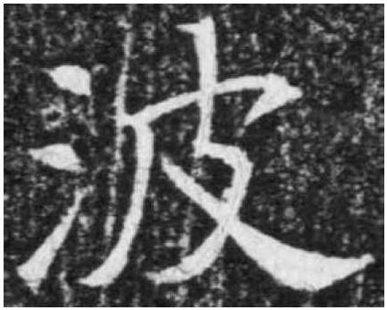 一作形声字理解,皮,表音。《说文》:“波,水涌流也,从水,皮声。”“皮”上古音为“帮母歌韵”,与“剥”之音、义有内在联系。皮是从兽体上“剥”落下来的。故“皮”有“剥”之音。中古音有所变化。二作会意字理解。王安石说:“波,水之皮也。”虽遭苏轼所讥,但不无机智。“波”字省去左边便也成了“皮”,作声符生成的字有:
