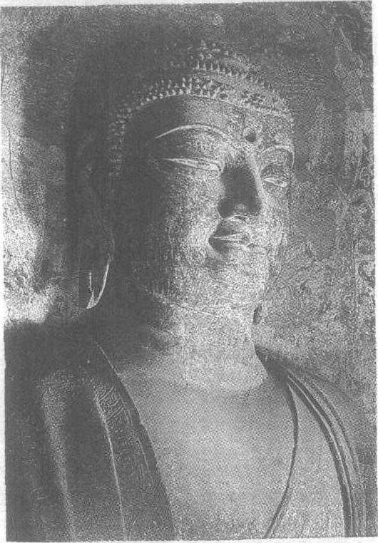 | 释义 | 泥塑主佛像 泥塑主佛像隋代。高500厘米。甘肃省天水市麦积山石窟第5窟中龛正壁。螺髻,面形方圆,两颐饱满,额间原有毫光。鼻唇厚润,耳硕大,双目平视前方,目光深邃颇有神采,具有一种超越尘世的辉煌气度。身披搭双肩的袈裟,外缘薄而质地坚韧,质感很强,并印有精细的花纹。造像风格既有北朝旧有的特点,同时也出现了新的时代风格,是过渡时期的作品。