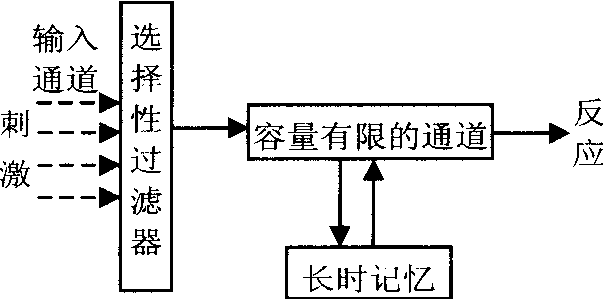 英国心理学家布罗德本特于1958年提出的一个注意模型。该模型假设,神经系统在信息加工的容量方面是有限度的。当信息通过大量平行的通道进入神经系统时, 由于到达某处的信息总量超过了负责知觉分析的高级中枢(p系统)的容量, 因而需要一种过滤的机制,在信息传输的通道上起关卡作用。这种机制能从一条输入线路选择信息,并使这种信息直接通向高级加工中枢,而没有得到选择的信息就被阻断而得不到处理。过滤型模型是一种“全或无”的模型。由于过滤器的作用,通过的信息就通过,而被阻断的信息就完全失去了。过滤器的选择作用并不是随机的。新异的刺激、较强的刺激、人所期待的信息、具有生物意义的刺激等易于通过过滤器,受到人的注意。过滤器模型得到了一些双听实验的支持,但也有的研究对该模型提出了异议。过滤器模型可用下图表示。