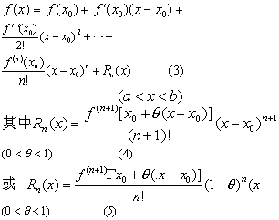 皮亚诺形式: Rm (x) =0 (xm) (x→0) 拉格朗日形式: (0<θ<1)柯西形式: (0<θ<1).当n=0时,带拉格朗日余项的泰勒公式变成 x)=f(x0)+f′[x0 +θ(x -x0)](x-—x0) (0<θ<1) 这就是拉格朗日中值定理,可见泰勒公式是拉格朗日中值定理的推广.泰勒公式是用多项式近似地表示已知函数的重要工具,无论在理论上还是在实际应用上都是重要的.泰勒公式的余项是检验多项式可靠程度的工具,其中拉格朗日余项可解决大部分定量检验的问题. ☚ 洛必大法则 麦克劳林公式 ☛ |