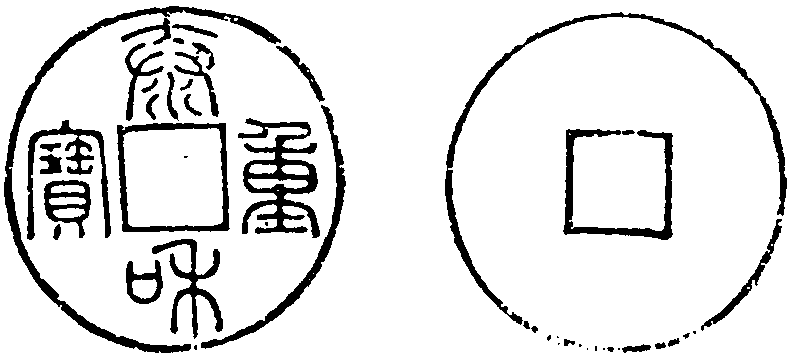 | 释义 | 古代名物 > 貨幣類 > 銅鐵錢部 > 金 > 泰和重寳 泰和重寳 tàihézhòngbǎo 金章宗泰和年間(公元1201—1208年)所鑄折十大錢。形體厚大,廓細肉深,玉筯篆錢文由書法名家黨懷英書,製作極爲精美。徑約四·五厘米,重十六至十九克。《金史·食貨志三》:“〔泰和四年〕鑄大錢一值十,篆文曰‘泰和重寳’,與鈔兼行。”