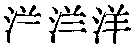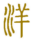 yánɡ形声,从水,羊声,本义为古水名,引申为盛大、宽广、广阔的水面、地球表面上比海更大的水域、外国的、现代化的等。 |