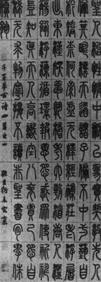 【简介】: 淸·孙星衍书于乾隆五十七年(1792)。纸本。篆书。古诗一首。凡八行,共一百一十五字。160×60.4cm。故宫博物院藏。刊于日本《中国书道全集》(八)。