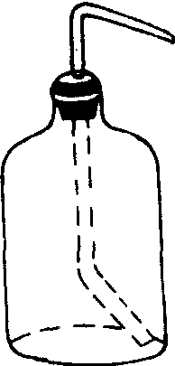 | 释义 | 洗瓶 洗瓶xiping常用有弹性的塑料制成的细口瓶做容器,瓶口有单孔橡皮塞,塞上插有玻璃弯管,构造见图。瓶内盛放蒸馏水,用于洗涤沉淀或仪器。使用时,手握瓶体,稍用力捏挤水就会从尖嘴口冲出。捏挤时不可用力过猛,以防水或被洗涤的沉淀溅出。塑料瓶弹性有限,一次捏挤出的水量较少,若用水量稍大时,应进行多次操作。