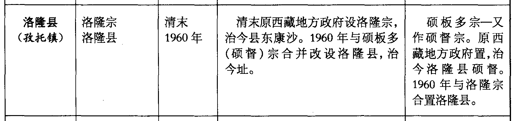 洛隆县(孜托镇)洛隆宗洛隆县清末1960年清末原西藏地方政府设洛隆宗,治今县东康沙。1960年与硕板多(硕督)宗合并改设洛隆县,治今址。硕板多宗—又作硕督宗。原西藏地方政府置,治今洛隆县硕督。1960年与洛隆宗合置洛隆县。