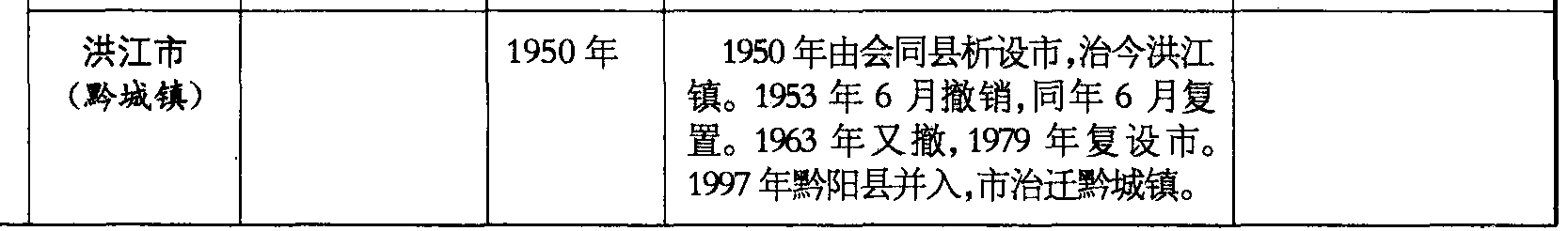 洪江市(黔城镇)1950年1950年由会同县析设市,治今洪江镇。1953年6月撤销,同年6月复置。1963年又撤,1979年复设市。1997年黔阳县并入,市治迁黔城镇。