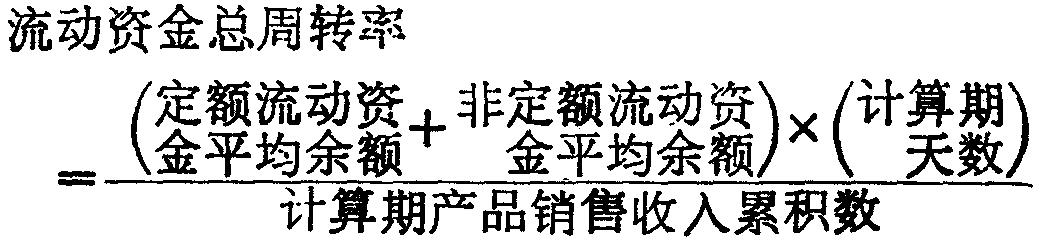 流动资金总周转率流动资金周转率的一种综合形式。指一定时期内企业全部流动资金经常占用额同其所完成的周转额之比。全部流动资金包括定额流动资金和非定额流动资金两部分。流动资金总周转率的高低,主要是以定额流动资金的周转速度为转移,同时也取决于定额流动资金与非定额流动资金的比例关系。流动资金总周转率有周转次数和周转天数两种表现形式,但人们通常以后者加以考核。另外,流动资金周转额的计算基础有两种情形,或是按产品销售成本计价,或是按产品销售收入计价。目前,一般以产品销售收入确定流动资金周转额。如此,流动资金总周转率的一般计算公式为: