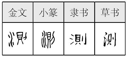 cè測,形声,从水,則声,本义为测量水的深度,引申为度量、估计等。《简化字表》类推简作“测”。 |