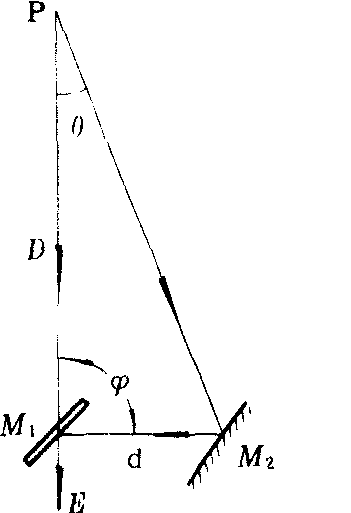| 释义 | 测距仪range finder根据两点间无线电脉冲波来回所需的时间测得距离的仪器。为了增加定位距离,可在地面上建造专为船舶定位用的指标电台,它可被动或主动地发射出电波代替雷达所用的电波。为了识别各指标电台,各指标电台均按照一定方式发射脉冲信号,以资区别。 测距仪 测距仪cejuyi用以测定物体与观察者之间距离的光学仪器。图中示出了一种简单测距仪的光路原理。自被测物体P发出的光线,从两个窗口进入仪器,分别射至分光板M1和平面反射镜M2。射至M1的光线有一部分透过M1,在E处通过目镜进行观察,可看到物体P的像。射至M2的光线经M2反射至M1,再经M1反射部分光线,通过目镜观察,也看到物体P的像。两个像若未恰好重合,可转动M2,直到重合为止,此时角ᵠ应为90°。M1和M2之间的距离d为已知,角θ的大小可根据M2所转动到的位置确定。于是,P到观察者的距离为 D=dctgθ, 其数值可从仪器上的刻度直接读出。这种测距仪用单目镜观察,称为叠像测距仪。还有一种测距仪用双目镜观察,根据体视原理进行测距,称为体视测距仪。测距仪有许多应用,例如测量远物的距离、在军事上用以描准敌人的阵地、测量飞机的高度、在精密照相机上用于调焦等。