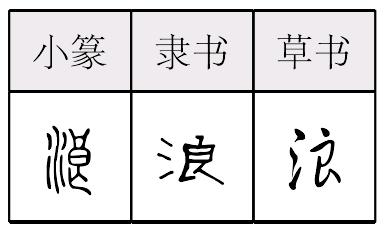 [氵(水,意符)+良(聲符)→浪(《説文》:“浪,滄浪水也。南入江。從水,良聲。”浪,大波〈波浪。海浪〉;像波浪起伏〈麥浪。聲浪〉;放縱〈放浪〉。浪,今指波浪。引申爲像波浪一樣起伏的東西〈麥浪〉。又行爲放蕩〈浪漫〉,浪漫一詞是由英語romantic音譯而來,由於譯得妙,导致這個“洋娃娃”,让很多人以爲是“中國娃”。)]