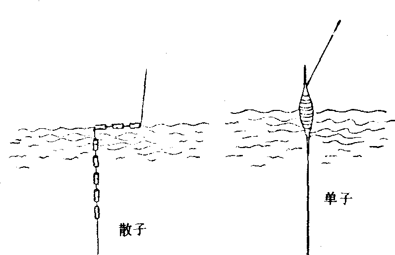 浮漂 1.散子;2.单子 ☚ 鱼漂 浮标 ☛ |