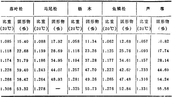 *摘自国外文献。 表6-4-3 亚硫酸氢镁红液的比重和浓度的关系