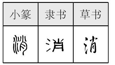 【提示】右下的⺝, 起笔是竖,不是撇。月,单独位于部件下方时,起笔的竖撇改成竖; 中间的两横,宋体与左右两边相接,楷体与左边相接,与右边相离。 *消xiāo10画 水部 (1) 逐渐减少,直至完全散失: ~失|~化|烟~云散|瓦解冰~。 (2) 使消失;除去: ~除|~灭|~毒|~炎。 (3) 排遣;打发: ~遣|~闲|~磨|~夏|~夜。 (4) 禁受;禁得起: ~受|吃不~。 (5) 须;需要: 不~|只~他一句话。 消 ☚ 滯 渴 ☛ 消xiāo小篆以来的形声字。从氵(水),肖声。指除去,完全不存在。如:消毒|消炎。组词如:消灭|消费|消极|消息(本指消长,增减,变化,平息。转义指音信。近代又指机械装置,现代作销字)。引申指溶化,散失。如:冰消|烟消火灭。组词如:消化。又引申为消遣,即把时间度过去。如:消夜|消夏。组词如:消遣。又通“销”,指熔化。 消★常◎常