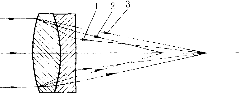 1—蓝光 2—黄光 3—红光 消色差透镜不但可消色差,而且通过适当改变各面的曲率半径还可消球差。如果构成双合透镜的两种玻璃可以任意选择,则它同时还能消彗差。也有对三种或四种色光矫正色差的,这时的剩余色差更小,但由于设计和制造上的困难,这样的消色差透镜只应用于某些特殊场合。消色差透镜的应用很广,一个多透镜的光学系统常由多个消色差透镜组成。优质的显微物镜、照相镜头等都是既消色差又消其它各种单色像差的复杂的透镜组合系统。 ☚ 横向色差 光阑 ☛ 消色差透镜achromatic lens |