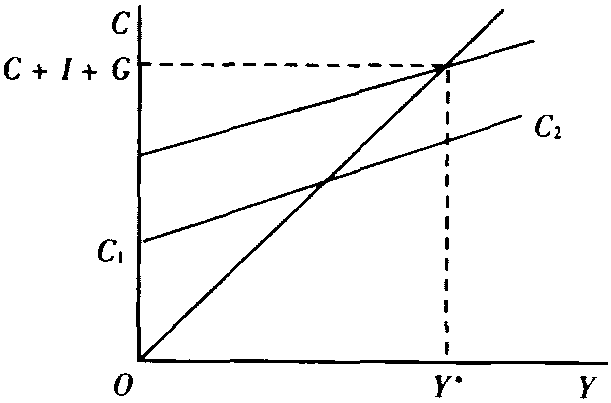 Y*=C+I+G 表明,当私人投资 (I) 和政府支出 (G)提高时,国民收入 (Y) 也随之提高。这就是凯恩斯(J. M. Keynes)有效需求原理的基本内容。