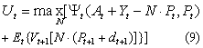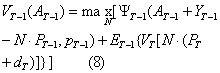 VT(AT)=ψT(AT+YT,pT) (7) 给定(7),可以得到T-1期的效用方程,即: