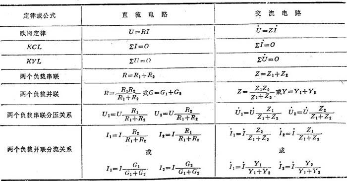 用相量法分析交流电路时,直流电路的各种公式、定理和方法均适用于交流电路,其差别仅是用对应的相量形式来表示各种关系,相应的运算为复数运算。电路基本定律和常用公式在交、直流电路中的对应关系见表8.1-5。 交流电路的计算步骤如下: 表8.1-5 基本定律和常用公式在交直流电路中的对应关系  ❶ 将电路中无源元件R、L、C的参数分别用其对应的复阻抗表示,将电压和电流的瞬时值用其对应的相量表示; ❷ 利用电路的分析方法和定理,求待求量的相量; ❸ 将求得的相量用瞬时值表达式表示。 当交流电路比较简单时,可先绘其相量图,利用相量图求解待求量的相量,这样可使电路中的电压、电流间的相位关系更为形象直观,有时还可简化运算。 |