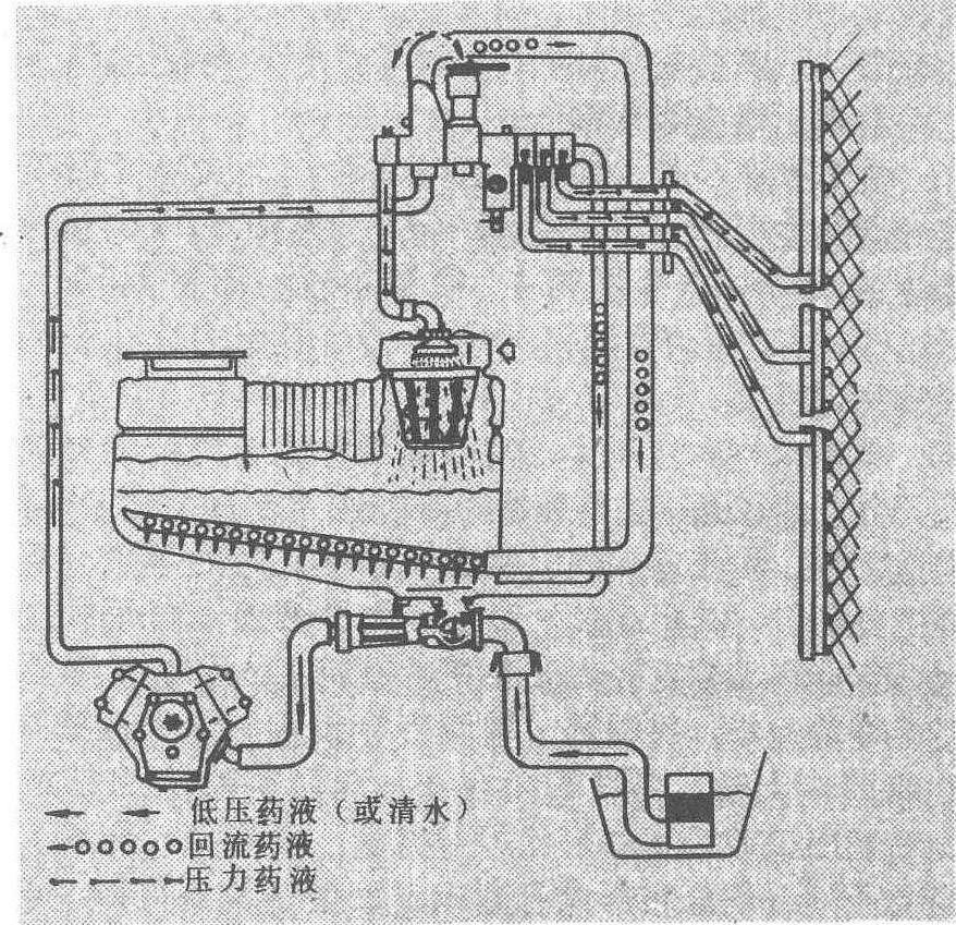 防治果园病虫害时,可采用高压喷枪。其顶端装有可调涡流室深浅的圆锥雾喷头,根据树冠大小、高矮进行调节。喷施压力一般在0.7兆帕以上。(见彩图92) 防治大田草害时,如向地面全面喷施除草剂,最好使用安装有多个扇形雾喷头的喷杆喷施,这样可减少衔接喷幅的次数,既提高作业效率也易保证喷施质量。喷施的要求是:❶每个喷头喷出的雾面与水平喷杆间有一5 °左右的偏角。 ❷喷幅内药液沉积量是邻近各喷头喷出药液量的组合,要求分布均匀度的变异系数不超过15%。 ❸喷施时喷头与地面的距离适当,以保证药液在地面沉积分布均匀。药液沉积分布的均匀性,除可用专用的集雾槽测量外,也可在干燥水泥平地上作实际行走喷施试验,根据地面上水迹干燥的先后粗略判断。 ❹喷施压力宜在0.3兆帕以下。喷施压力大时,药液雾流中的小雾滴数目剧增,易为自然风携带出靶标区(飘失),使邻近田区对除草剂敏感的作物受到药害。目前已生产有喷施压力在0.1~0.15兆帕时仍能保证喷施要求的低压扇形雾喷头以及反飘失喷头系列。 ❺停顿时,喷头处的防滴装置及总截止开关处的回流通道,应能自动迅速截止喷药,避免局部地块喷施过量的除草剂损害田间作物,或其残留影响后茬作物。 ❻为避免与邻接喷幅衔接处的漏喷、重喷,宽喷幅的喷雾机作业时,田间应在播种时留出作业行走道,或种有指示作物或竖立标志。有的喷雾机在喷杆两端配有专用喷头,喷洒泡沫作为指示印记。(见彩图74、89、90、92~96) |