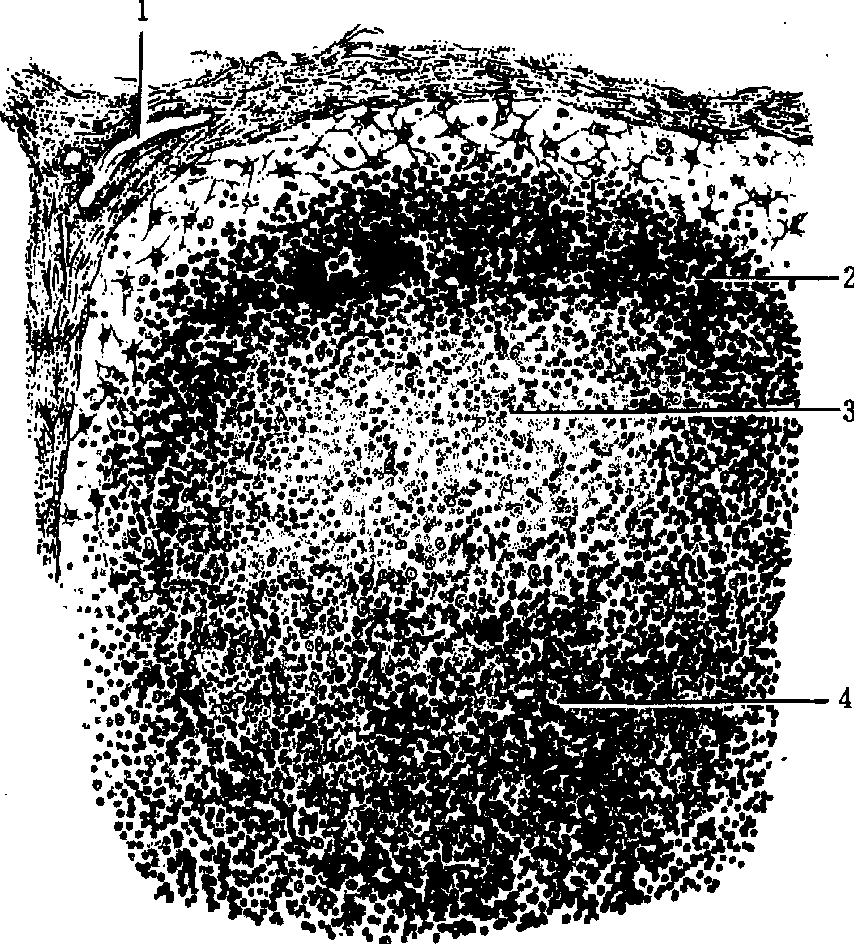 | 释义 | 淋巴器官lymphatic organs以淋巴组织为主形成的实质器官。可分为初级和次级淋巴器官。初级淋巴器官亦称中枢淋巴器官,是培育具免疫活性淋巴细胞的场所,胸腺和腔上囊属之。哺乳动物缺乏腔上囊,一般认为骨髓是其类同器官。这类淋巴器官发生较早,动物出生时已基本发育完善,但退化也较早。其网状细胞来源于内胚层上皮,称上皮性网状细胞,不能产生网状纤维,但能分泌激素;在其诱导下,从骨髓迁移来的干细胞分裂分化形成具有识别特异性抗原能力的淋巴细胞。次级淋巴器官亦称周围淋巴器官,是产生免疫应答的场所,淋巴结、脾、血结和血淋巴结属之。扁桃体虽被列入此类,但其网状细胞来源于内胚层上皮。这类淋巴器官在胚胎发育过程中出现较晚,退化也较迟。其网状细胞来源于间充质,不能分泌激素,但能形成网状纤维;从胸腺、腔上囊或骨髓迁移来的淋巴细胞分别居留于其一定区域,在抗原的刺激下,这些淋巴细胞可进一步分裂分化,形成具有相同特异性的淋巴细胞或浆细胞。