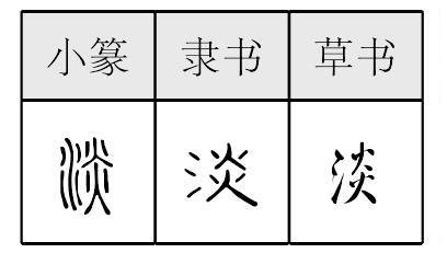 dàn形声,从水,炎声,本义为味道不浓厚,引申为颜色浅、不热心、生意不旺盛、没有意味的等。 【辨析】 淡/澹 见70页“澹”。 |