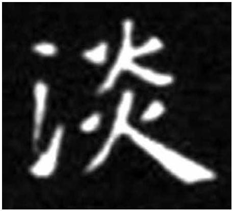【提示】火,起笔宋体是撇点,楷体是侧点。上下两个火字相叠,为避重捺,上面火的末笔捺改点。 *淡dàn11画 水部 (1) 味道不浓;特指含盐分少或无盐(与“咸”相对): 味~|咸~。 (2) 伙食简陋、平常: 粗茶~饭。 (3) 某种成分少,稀薄;特指颜色浅: ~红|~墨|~妆浓抹|天高云~。 (4) 安静;闲适: 恬~。 (5) 不经意;不热心: ~泊|~漠|~忘|冷~|~然处之。 (6) 生意萧条,不兴旺: ~季|~月。 (7) 无聊的;不相干的;无关紧要的: ~话|扯~。 淡 ☚ 涼 涒 ☛ 淡dàn上古形声字。从水,炎声。淡、炎古代声母均为舌尖音,后“炎”的舌尖音分化脱落。指味道不浓,含某种成分少,稀薄,跟“浓”相反。如:淡绿|淡酒|云淡风轻。引申为含的盐分少,跟“咸”相反。如:菜太淡|淡水湖。引申为不热心。组词如:冷淡。再引申为营业不旺盛。如:淡月|淡季。 淡★常◎常