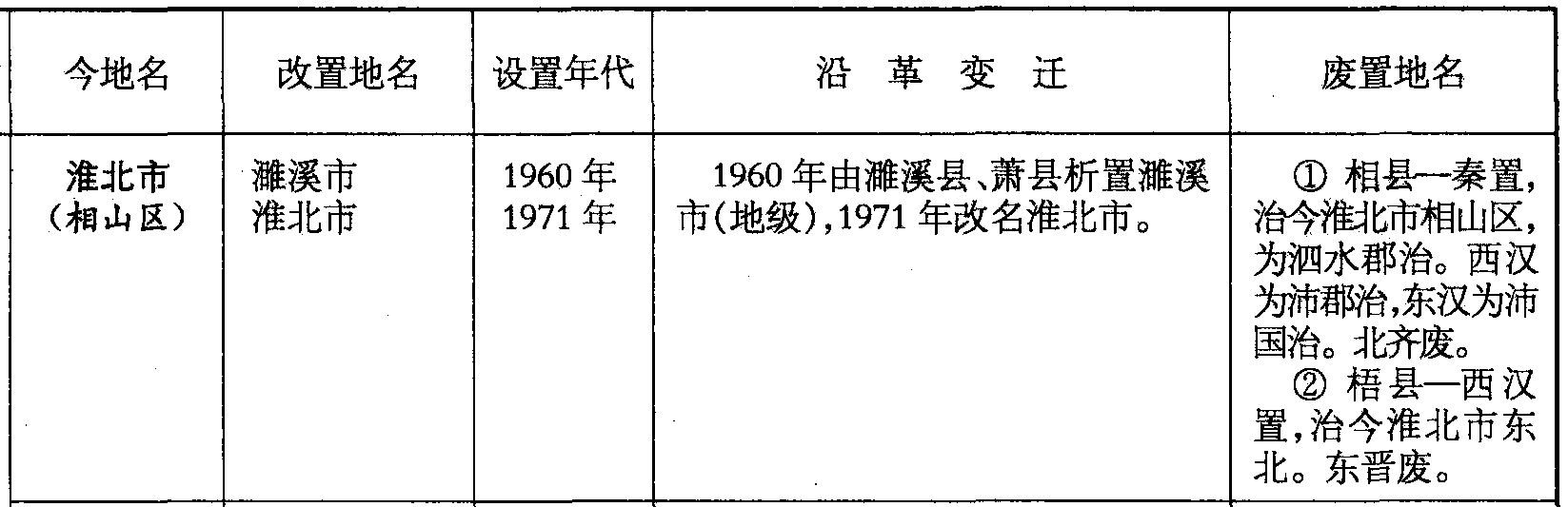 淮北市(相山区)濉溪市淮北市1960年1971年1960年由濉溪县、萧县析置濉溪市(地级),1971年改名淮北市。❶ 相县—秦置,治今淮北市相山区,为泗水郡治。西汉为沛郡治,东汉为沛国治。北齐废。❷ 梧县—西汉置,治今淮北市东北。东晋废。