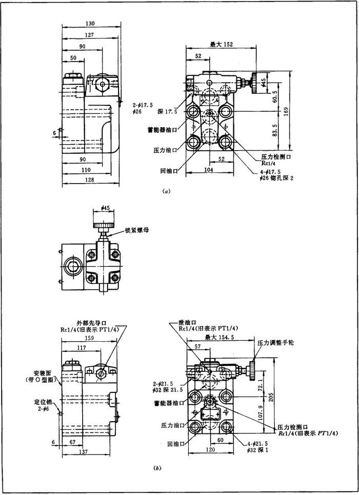 C.外形与安装尺寸 见表14.4-9。 表14.4-9 BUCG型卸荷溢流阀外形及连接尺寸 单位:mm