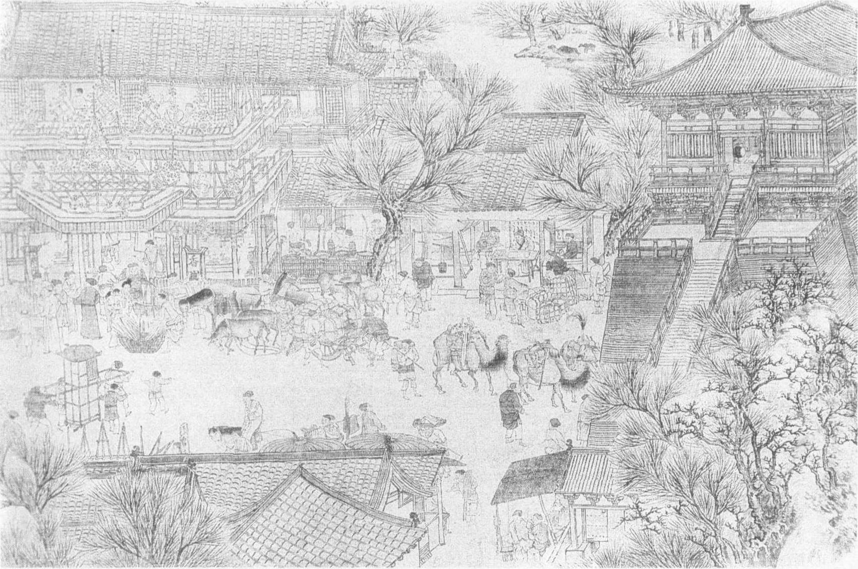☚ 墨竹图 云横秀岭图 ☛ 清明上河图北宋画家张择端作。描绘了北宋都城汴梁(今河南开封),清明时节从城郊到城内街市繁华热闹的市俗人事。画面的内容大体可分为三段:首段是城郊风光;中段是以拱桥为中心描绘汴河两岸繁华而又闲适的景色,是全图的中心;后段描写汴梁街市的实况。从商业、交通、漕运、建筑等几个角度,集中地再现了当时社会的生活面貌和风俗习尚。现藏故宫博物院。 清明上河图 清明上河图宋·张择端作。绢本设色,纵24.8厘米、横528.7厘米长卷,现藏故宫博物院。画卷描绘北宋首都汴梁(今河南开封)汴河两岸物阜民丰繁荣热闹的景象。画卷右边以村郊田野村落开端,赶集人和驮运的骡马从田间小路向城里集中,路旁树木萌发现出北国早春的气息。人流穿过丛丛苍劲老树,来到街道,水波激荡的汴河出现在画卷上,成为画卷中的主题,并沿汴河展开。运货舟船过拱桥是精采的一幕,岸上纤工俯身前行,准备驶过拱桥的木船,船桅已放倒,船工握篙盘索,各个紧张忙乱神态逼真;桥上人群挥臂助阵,喧呼嘈杂;行人聚集桥头围观,形成画卷中第一个高潮。那些赶脚、推车、挑担的人们,自无暇一顾,急忙过桥前往,穿街进城,来到热闹地段。城里车马行人摩肩接踵,酒楼店铺百肆杂阵,各色居住人等,表现出“百家技艺向春售,千里农商喧日昼”的繁华景象,形成画卷中第二个高潮。画上仕农工商、僧道卜医、男女老幼神态各异,官府篇宅、酒店茶楼、驼马舟车形式多样。从十字街头再往前,画到临近汴京中心而止,给人留有余思。此画卷除了具有艺术价值以外,还给后人留下许多历史资料,对研究宋代城市生活、工商交通、风俗、服饰、建筑等等很有价值。是一幅形象突出、含义丰富的千古杰作。