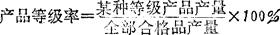 反映企业一定时期内产品本身质量水平,即满足消费者需要的程度的指标。 在我国产品质量标准根据产品分级管理的原则,有国家标准、部颁标准和经主管部门批准的企业标准,以及合同标准等。产品质量是否满足消费者的需要,根据它是否达到了质量标准来判定。 但产品质量取决于工作质量,工作质量是产品质量的保证。反映产品本身质量的指标,一般有:(1)产品平均技术性能指标。 如铜精矿的品位(即在铜精矿中含纯铜量占总重量的百分比),原煤的灰分、生铁的含硫量、硫酸的纯度、轴承的使用寿命,机床的转速和精密度,钟表每昼夜的走时误差等。例如:  (2)产品质量分。 根据产品的物理性能,规定一定数量的抽查项目,每个项目规定一定的质量分,按全国统一的办法进行抽样检查,并按标准计分,满分为100分,达不到满分,则把各个单项实际得分相加,就是整个产品质量分。(3)产品等级率。 当某些工业产品可以按照技术质量标准的要求,划分为不同的等级时,所采用的指标。其计算公式为:  也可采用产品等级系数来表示: