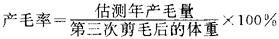 客观上反映了单位皮肤面积的产毛能力。统一以第三次剪毛后的体重来计算。其公式为: