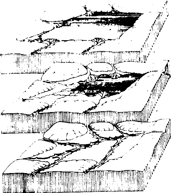 ❸湖积台地:由于地壳上升或其他原因导致侵蚀基准面下降,湖积平原被切割成台地,或称湖积阶地。