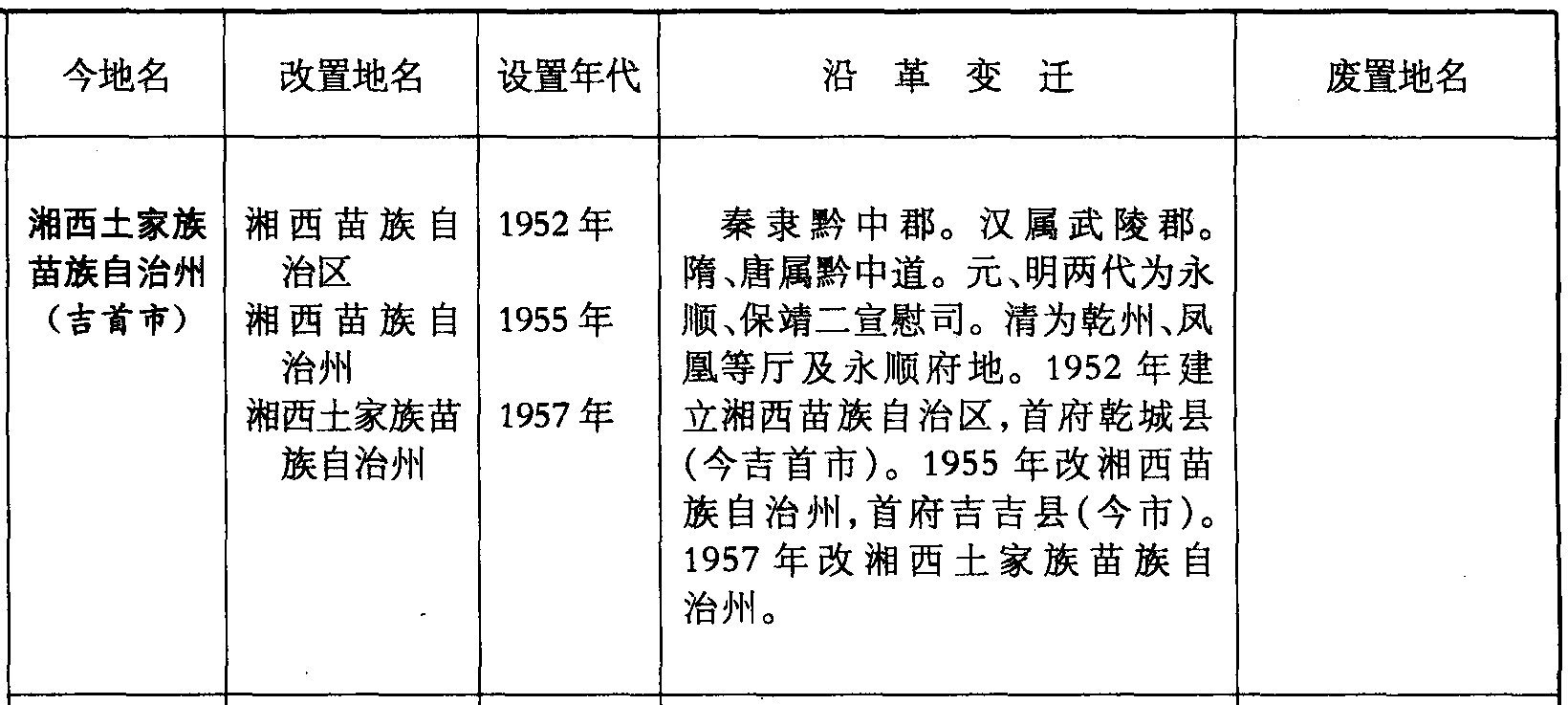 湘西土家族苗族自治州(吉首市)湘西苗族自治区湘西苗族自治州湘西土家族苗族自治州1952年1955年1957年秦隶黔中郡。汉属武陵郡。隋、唐属黔中道。元、明两代为永顺、保靖二宣慰司。清为乾州、凤凰等厅及永顺府地。1952年建立湘西苗族自治区,首府乾城县(今吉首市)。1955年改湘西苗族自治州,首府吉吉县(今市)。1957年改湘西土家族苗族自治州。