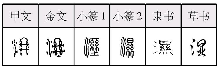 shī溼,表意,甲骨文从水从 (jué,同“绝”),金文、小篆1字形加土,隶定为“溼”;小篆2字形稍变,加日,隶定为“濕”。本义表示丝浸水而潮湿,引申为沾上水的、含水分多的。《异体字表》以“溼”为“濕”的异体字。日本近代俗字、《简化字表》把“濕”简作“湿”,据草书楷化。【辨析】 “濕”又读tà,古水名,与“溼”不是等义异体字。 【构词】 湿淋淋(溼淋淋∕濕淋淋)∣湿润(溼潤∕濕潤)∣浸湿(浸溼∕浸濕) |