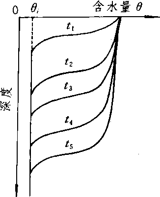湿润锋的前移过程 θi,初始含水量 t1~t5时间 |