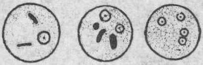 | 释义 | 溶组织内阿米巴entamoeba histolytica寄生于人体,可引起阿米巴病。分滋养体和包囊两期。滋养体大小不一,以直径15~30μm为常见。体分内质和外质,内质呈颗粒状,常含有被吞噬的红、白细胞;外质透明,不时伸出伪足,运动活泼。包囊为直径5~20μm的球形小体,随宿主的粪便排出体外,被人吞食后经胃到达回肠,虫体脱囊而出,经分裂繁殖变为很多的滋养体,寄生于大肠肠腔或其壁内。在当大肠下段粪便干结时,滋养体即形成包囊(图)。