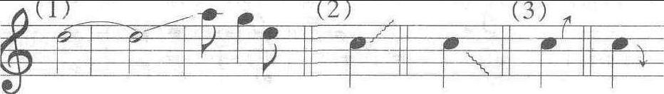 | 释义 | 滑音记号 滑音记号Portamento指用以表示从一音到另一音时声音连续滑行的符号。滑音记号多用于歌唱和弓弦乐器以及我国民族管乐器等。其标记(1)连接起音和滑向音之间的直线,滑向音通常用小音符;(2)一个音符后边的向上或向下的短曲线,向上表示上滑音,向下表示下滑音;(3)一个音符后边的向上或向下的箭头,向上表示上滑音,向下表示下滑音。