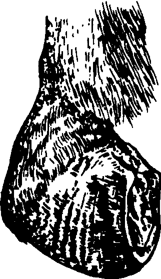 | 释义 | 〗。![]() ![]() 滚蹄contraction of the flexor tendons寸腕部板筋缩短(屈腱挛缩),蹄向后翻,蹄底向上,行走时蹄向前滚动的病证。常见于马骡驴等家畜。多因长途运输或劳役过度,久役伤筋,致使板筋肿痛, 日久短缩所致。此外,寸腕受伤,寸腕太软,寒湿侵袭,蹄尖过削,蹄踵增高也可引起。证见屈腱紧张,系部直立,蹄壁前倾。行走蹄尖着地,向前滚动,日久蹄尖严重磨损,蹄臼后翻(图),患肢拖地而行。轻者治宜矫正蹄形,合理削蹄;较重者装着特制的象鼻蹄铁,或蹬状蹄铁;严重者需施行割腱术。术前修整患蹄,修成和健蹄近似。然后将患畜侧卧保定,患肢着地,将三条健肢固定在一起,将病肢蹄冠部放在埋好的木桩旁边。以后用绳套套在蹄踵部,再用一木棍插入绳套另一端,木棍的前端别在木桩上,木棍的另一端别在术者脚上(或用助手拉住木棍的另一端),将患肢固定好,随后进行术部处理。术部在系凹部下三分之一正中处。用大宽针对准术部刺入0.6厘米深,针面与深部屈腱十字垂直晃动针体,使针逐渐深入,同时术者以腿用力向外推动木棍。针拨动时可听到咯吱咯吱的响声。将深部屈腱割断一部分(不可全部割断),患蹄转正时可听到“咔吧”一声响,应立即停针。以绷带包扎。术后令家畜小心站起,以防造成屈腱全部断裂。术后4~5天内宜静养,一周之后可短时间慢步牵遛,45天后方可轻度使役。同时厩舍要清洁,术部要保持卫生,防止感染。患畜初次钉掌后,掌前象鼻易磨损,当磨损达三分之一时,即换新掌,以防止患蹄复发。