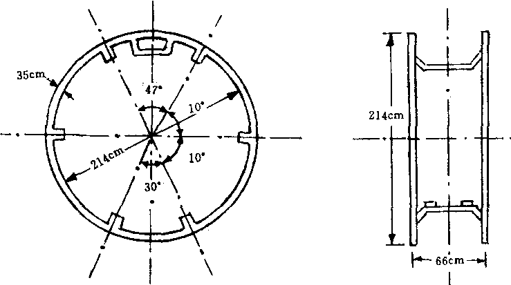 | 释义 | 滚轮 滚轮也称“伏虎”。一种发展身体素质的辅助器械。由直径214厘米的2个平行大轮盘组成。两轮之间相距66厘米,有6根横杠,2只踏板和2只把手环。滚轮各部的尺寸见图。轮盘直径通常以高于运动员身高15~20厘米为宜。其直径与各部尺寸,可按比例增大或缩小。