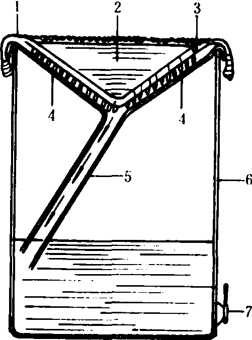 重力滤蜜器 加压滤蜜器 由一大的贮蜜沉淀桶、一个搅拌桶、一台蜜泵、一个蛇形管加热装置和一架压力过滤器组成。蜂蜜在沉淀桶澄清后,从桶底导入搅拌桶,此时加入1%的硅藻土作助滤剂,搅拌均匀后,用蜜泵抽送到加热装置,将蜂蜜加热到60~70℃,然后再送到压力滤蜜器过滤。加热过滤能使蜜中的杂质微粒与助滤剂形成多孔物质,附着在滤布或滤纸表面,从而使过滤过程连续进行。 离心滤蜜器 由三层不同网眼的金属纱重叠而成,滤网可拆下清洗。这种滤蜜器能快速处理大量蜂蜜,但甩出的蜜滴易混入气泡。 沉淀滤蜜器 由数个连通的沉淀桶或沉淀槽组成,能同时在每一沉淀桶内连续进行沉淀澄清,沉淀12~14小时即可清除上浮的杂质。 沉淀槽 这种滤蜜装置是一个内外两层的长方形沉淀槽。夹层内的水经槽底电热器加热后,蜜温升高到38~43℃。槽内以挡板横隔为三四区,进入的蜂蜜缓慢地通过挡板下方进入其下各区内,较大的蜡屑、杂质等被截附在挡板上。沉淀后清除上浮在各区蜜面上的较轻杂质,挡板越多,澄清蜂蜜就越有效。排蜜在最后一区进行。有的槽内配有浮阀,自动控制蜂蜜的排出和进入。 |