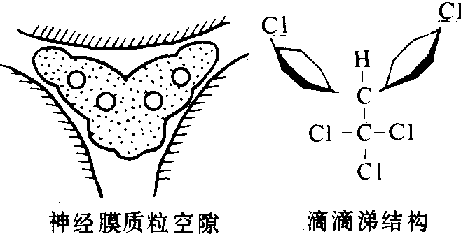 | 释义 | 滴滴涕杀虫机制insecticidal mechanism ofDDT滴滴涕主要作用于昆虫神经轴突膜,使其产生异常神经兴奋,干扰或阻断其正常生理生化过程而使昆虫致死。主要有三种作用学说: ❶钠离子通道学说;